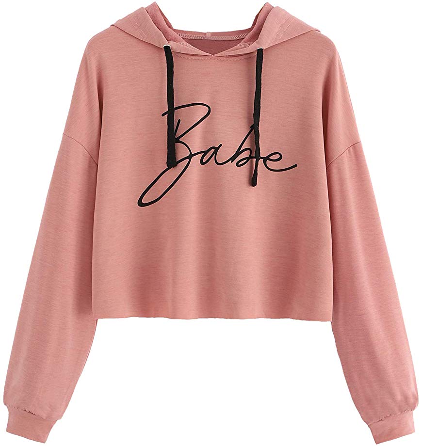 - Drop Shoulder Plain Raw Hem Crop Hoodie, Long Sleeve,Drawstring Hooded design,Crop Top